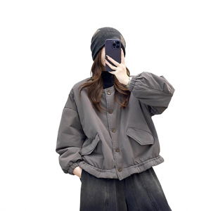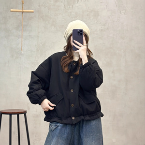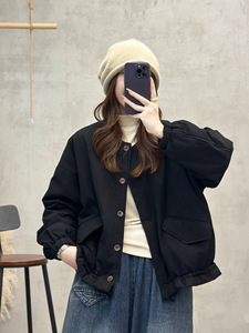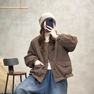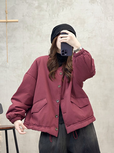 圆领棉衣 2025冬季新款 文艺复古宽松保暖棉服女显瘦上衣外套8112