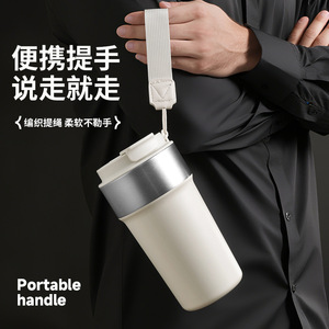现货新款车载汽车杯304不锈钢8代咖啡杯手提带提绳便携吸管保温杯