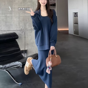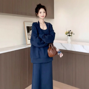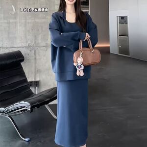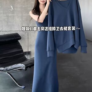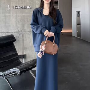 韩系松弛感卫衣套装连衣裙子女2025新款早秋季高级感穿搭气质长裙