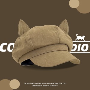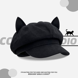 2025春夏新款猫耳朵纯色 贝雷帽 小众显脸小百搭 鸭舌帽 画家帽