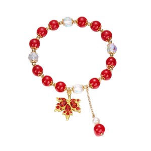 跨境新款金枝玉叶串珠水晶手链枫叶吊坠小众设计秋冬百搭红色手串