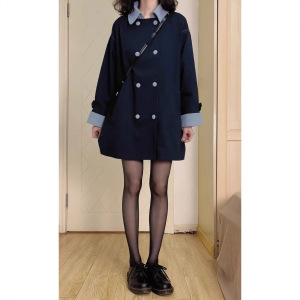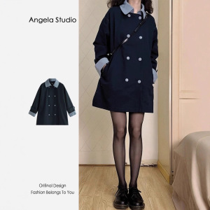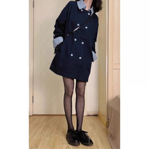 早秋季赫本风藏青色休闲宽松风衣外套2025新款女中长款感小个子潮