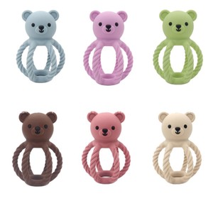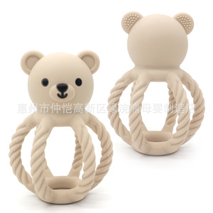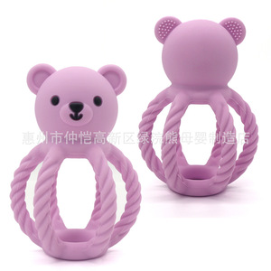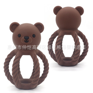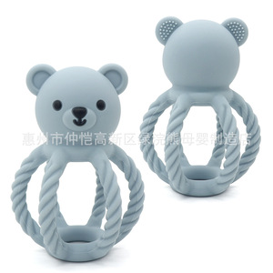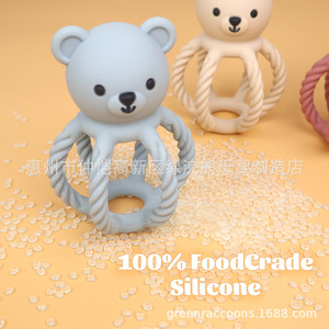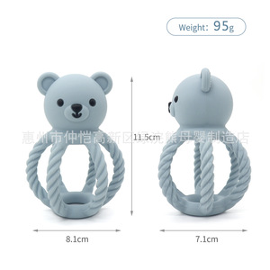 亚马逊新款硅胶材质牙胶婴儿口欲期磨牙防吃手硅胶咬咬乐安抚摇铃
