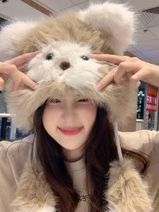 甜美可爱小猫毛绒帽子女款秋冬季防寒雷锋帽百搭保暖暹罗猫毛绒帽