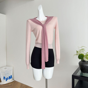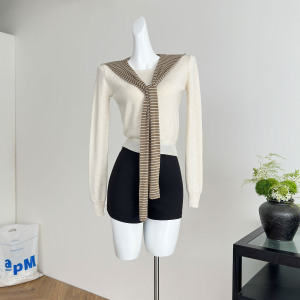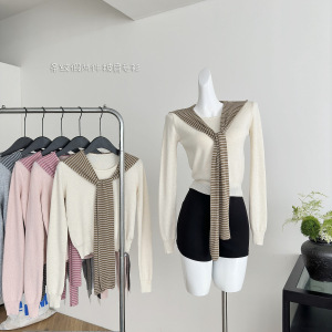 校园风羊毛假两件条纹披肩系带连帽针织衫女2025新款秋季韩系上衣
