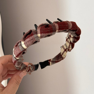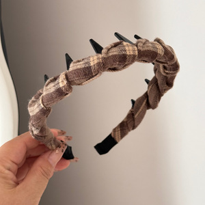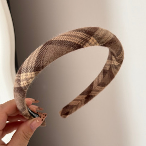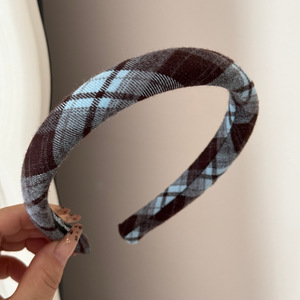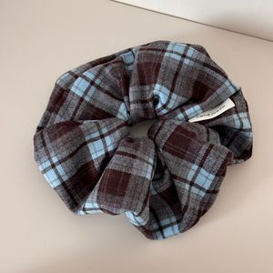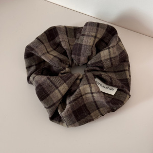 柔软布艺棕色格子大肠发圈女感秋冬学院风大号丸子头发绳发饰新款