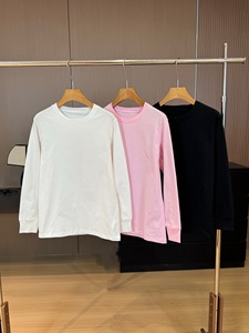 091902 秋季新款男女款纯色圆领日常休闲通勤百搭印花纯棉长袖T恤