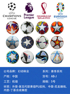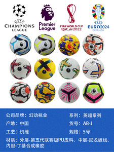 跨境足球欧冠英超联赛足球5号球 成人户外运动训练耐磨PU机缝足球