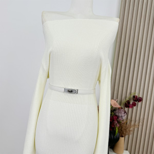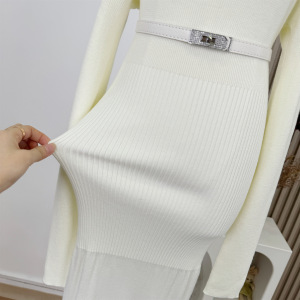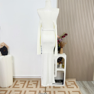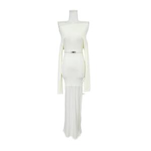 白栀一字肩长袖针织拼接连衣裙直筒拼接长款包臀裙