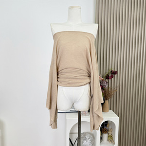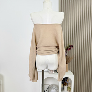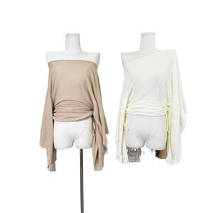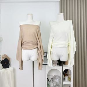 叠搭伴侣绵羊毛抽绳针织罩衫一字肩微透披肩上衣女