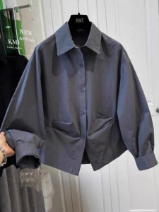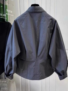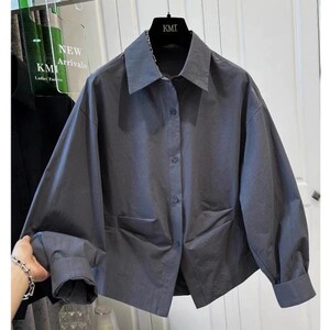 设计感收腰宽松衬衣女长袖纯色单排扣翻领衬衫女士气质上衣A7278