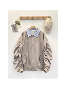 美式春秋新款棒球服夹克男女学院风高级感休闲条纹拼接假两件外套