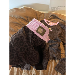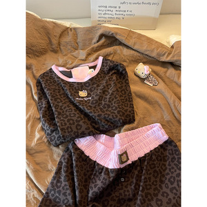 网红爆款HelloKitty豹纹长袖睡衣女秋季2025新款短裤家居服套装潮