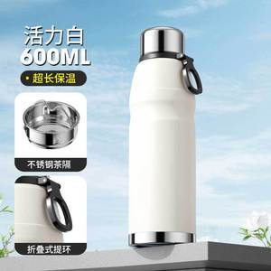 免费设计logo大容量跨境全钢盖304不锈钢带提环茶水分离保温杯