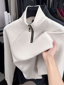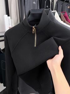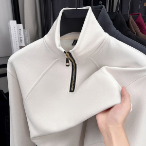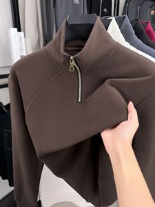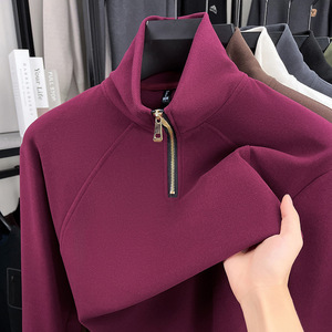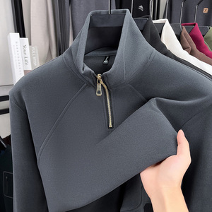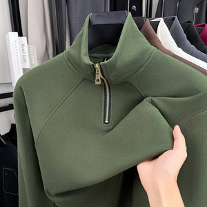 跨境批发双面德绒卫衣男士春秋季半拉链立领休闲纯色加厚保暖上衣