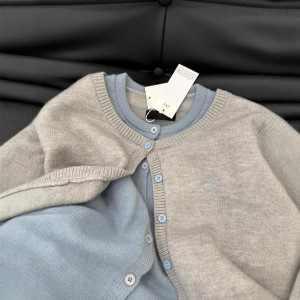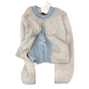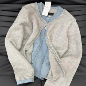 格雷系假两件针织毛衣外套女2025秋季新款灰色感撞色开衫上衣