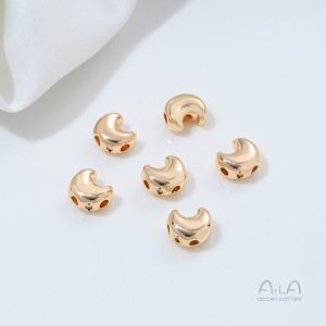 铜镀14K金镶锆石屁桃心星星月亮通孔水晶隔珠手工diy饰品配件材料