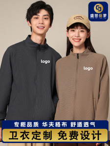 华夫格卫衣春秋款刺绣定制团体工作服印logo公司团建聚会长袖文化衫外套