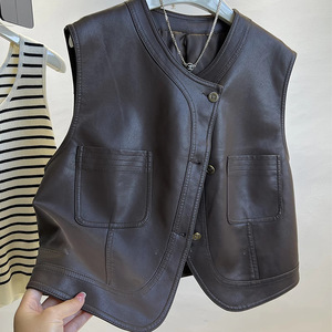 皮马甲女短款2025秋装新款韩系穿搭机车服无袖背心马夹外套上衣潮
