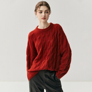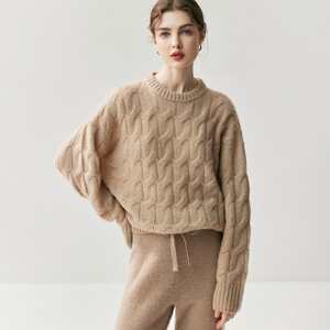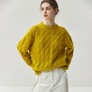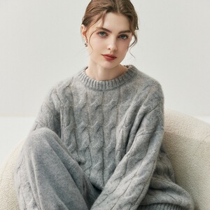 山羊绒桑蚕丝混纺衫五针加厚女款圆领套头内搭秋冬新款扭花毛衣潮