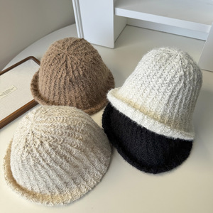 出口日单2025早秋时尚毛绒针织渔夫帽子女秋冬素颜休闲百搭卷边盆