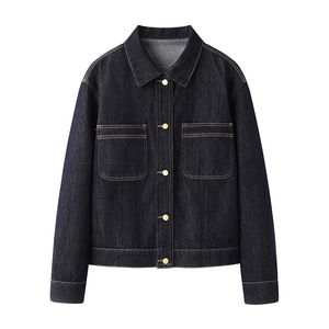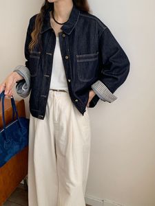 2025年秋宽松时尚秋季双口袋格子袖牛仔外套复古百搭高级翻领夹克