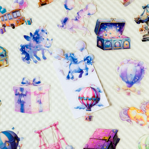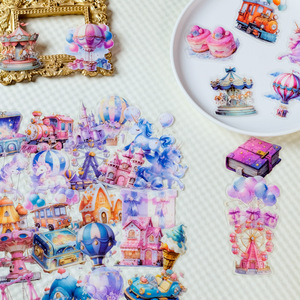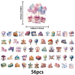56张跨境新款游乐园主题PET贴纸梦幻少女心儿童diy手账行李箱贴画