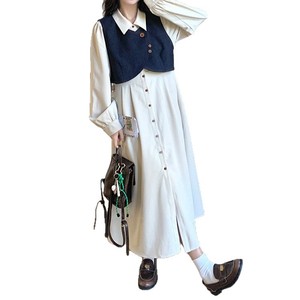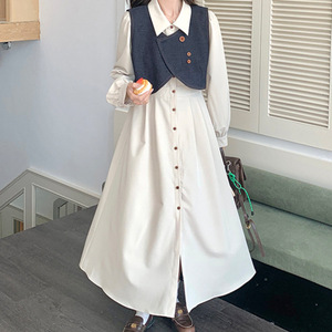 法式气质慵懒牛仔马甲连衣裙套装女2025秋季新款衬衫裙宽松两件套