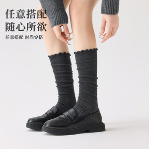 小腿袜子女秋冬款花边堆堆袜显瘦jk中筒袜搭配靴子小皮鞋长筒棉袜