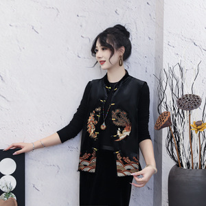 刺绣国风新中式马甲2025秋季新款妈妈装复古坎肩背心上衣重工立领