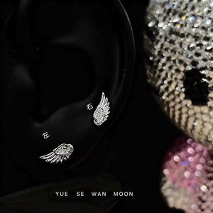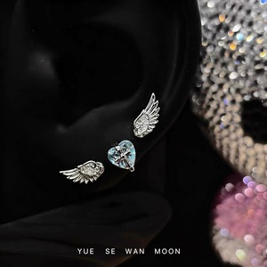 爆闪天使翅膀耳钉钛钢养耳洞耳骨钉耳蜗钉双耳洞组合叠戴耳环耳饰