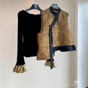 南油直播2025秋冬新款超百搭高密度植绒打底拼接喇叭袖上衣不退换