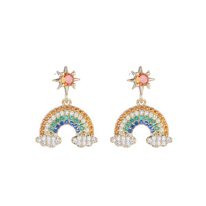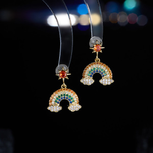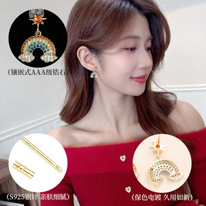 利宇小众设计锆石镶嵌彩虹耳环s925银针轻奢高级感百搭甜酷风耳饰
