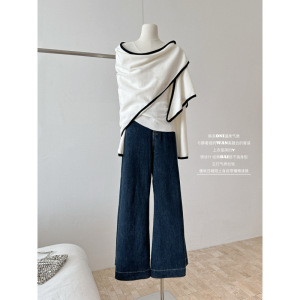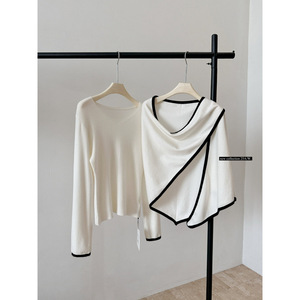 浮光如梦韩系气质真两件长袖针织衫上衣三角披肩设计感套装女