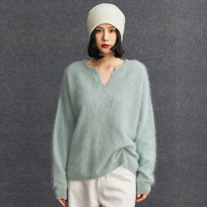 100%纯山羊绒女士拉绒宽松休闲百搭慵懒风羊绒衫秋冬季新款针织衫