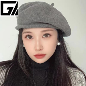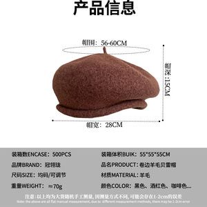 新款卷边光板羊毛贝雷帽纯羊毛舒适保暖毛绒帽秋冬时尚百搭画家帽