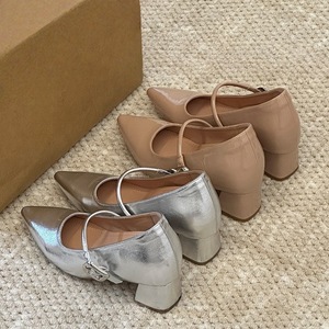 不累脚!内增高粗跟尖头2025裸色高跟鞋浅口玛丽珍鞋单鞋女