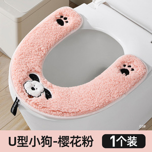 马桶坐垫【粉色1个装带提手】加厚暖绒舒适亲肤