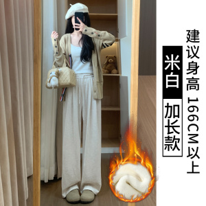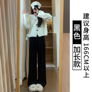 直筒糯米裤女咖色春秋2025新款高腰垂感慵懒羊绒秋冬加绒阔腿裤子
