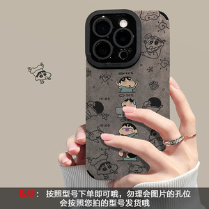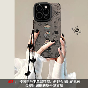 蜡笔小新手链适用苹果15promax手机壳iphone17翻毛皮16软硅胶14女