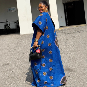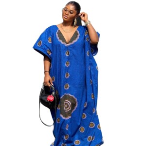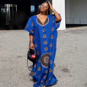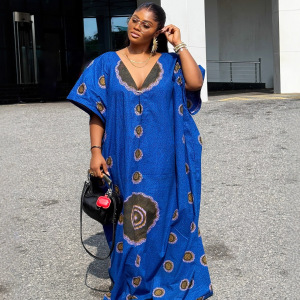 欧美女装大气宽松休闲V领长款印花连衣裙女非洲洋气时尚新款长袍