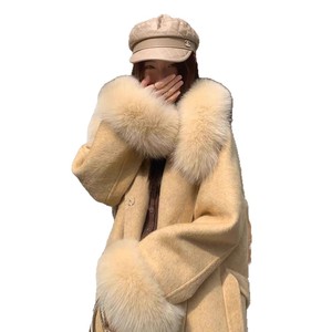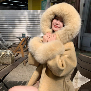 网红高级感双面羊毛大衣女狐狸毛连帽羊毛双面呢短款皮草毛呢外套