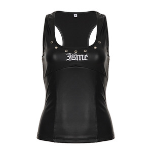 小众风工装机能X型美背PU皮背心鸡眼打孔设计感休闲辣妹个性女装