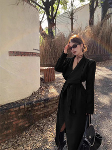 高级感黑色长袖风衣外套女秋季2025新款长款宽松显瘦开衫上衣ins