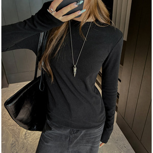 严选秋冬高级感磨毛打底衫女式莱赛尔圆领上衣纯色基础款长袖t恤