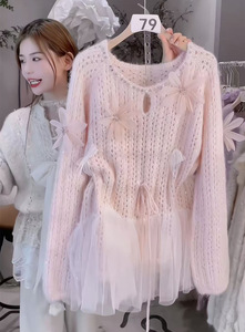 镂空蝴蝶结毛衣套头2025秋冬新款韩版宽松设计感甜美针织衫