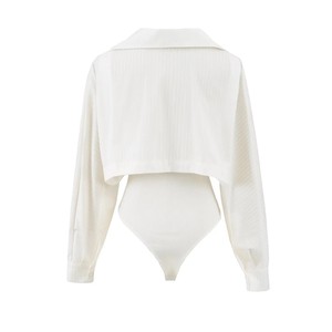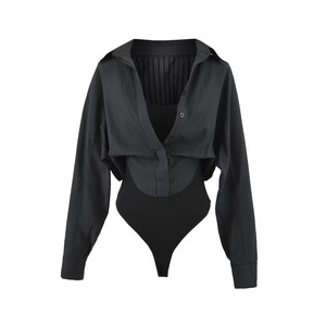 法式设计感小众女纯欲风假两件衬衫秋季辣妹露腰修身衬衣连体衣