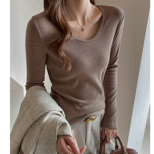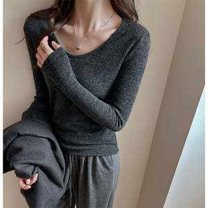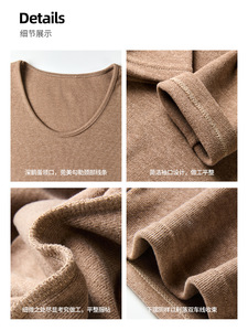 严选秋冬磨毛长袖内搭打底衫女新款v领仿羊绒时尚气质高级感上衣