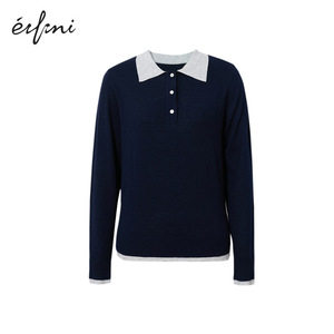 伊**撞色POLO领套头针织衫时髦上衣女2025秋季新款