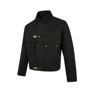 EME 秋季珠帆布夹克洗褪飞机扣翻领复古cleanfi短宽工装外套男女